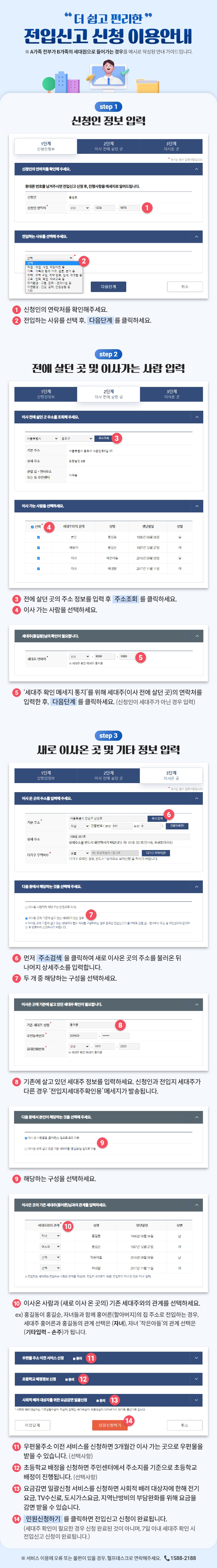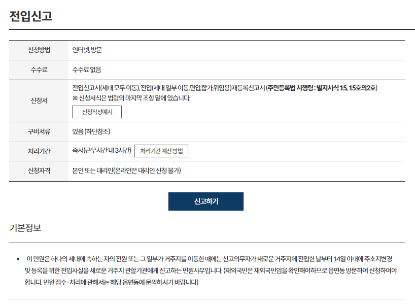 정부24 홈페이지를 이용해서 전입신고 절차를 진행해 보길 바란다.