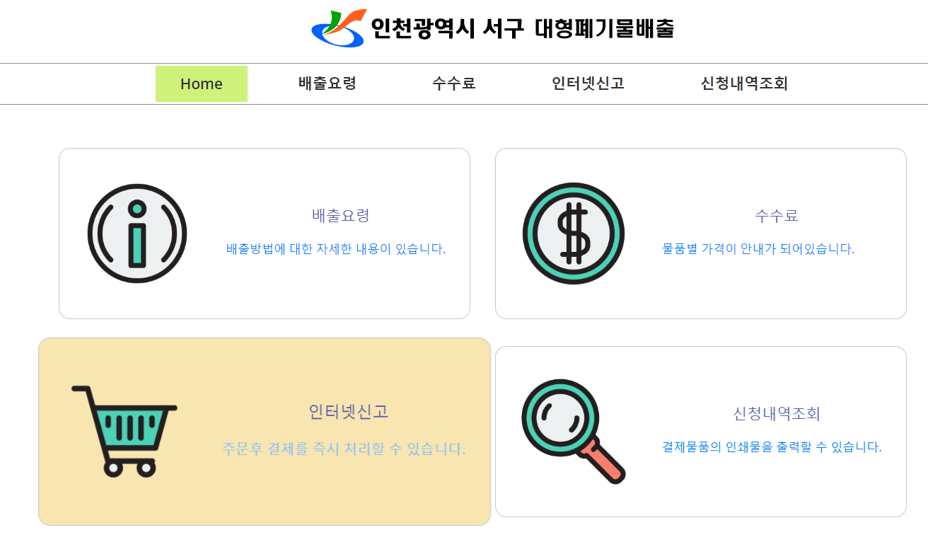 인천 서구의 대형폐기물 배출신고 사이트 입니다